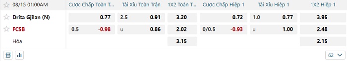 Tip kèo Châu Á hiệp 1 Drita Gjilan vs FCSB