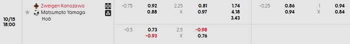Tip kèo Châu Á hiệp 1 Zweigen vs Matsumoto