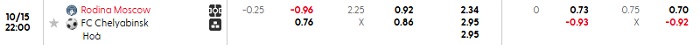 Tip kèo Châu Á hiệp 1 Rodina Moscow vs Chelyabinsk