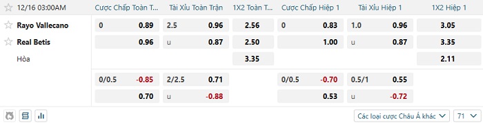 Tip kèo Châu Á full trận Vallecano vs Real Betis