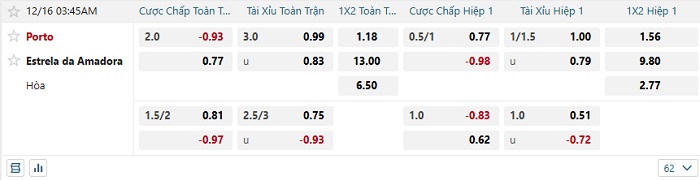 Tip kèo Châu Á hiệp 1 Porto vs Estrela