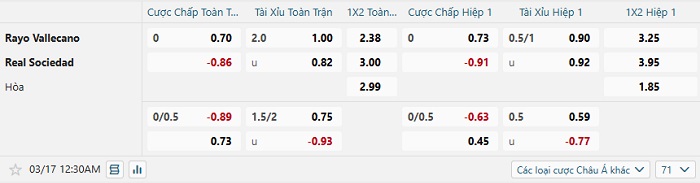 Tip kèo Châu Á full trận Vallecano vs Sociedad