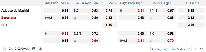 Tip kèo Châu Á hiệp 1 Atletico Madrid vs Barcelona
