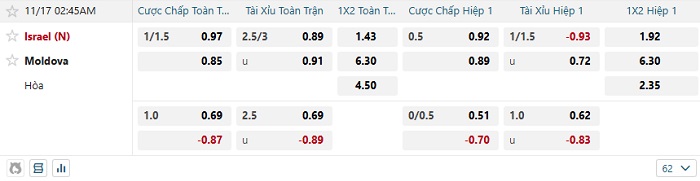Tip kèo Châu Á hiệp 1 Israel vs Moldova