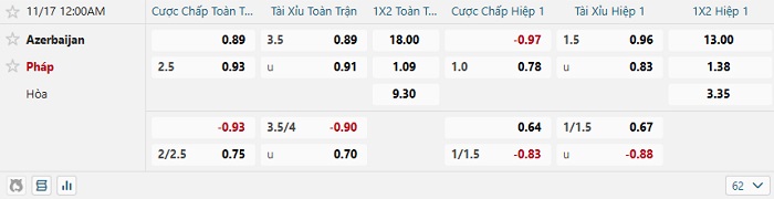 Tip kèo Châu Á hiệp 1 Azerbaijan vs Pháp