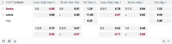 Tip kèo Châu Á hiệp 1 Serbia vs Latvia