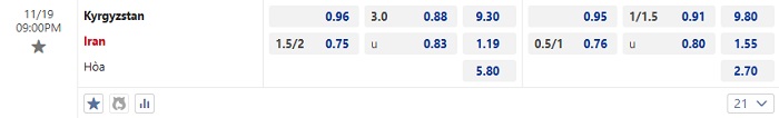 Tip kèo Châu Á hiệp 1 Kyrgyzstan vs Iran
