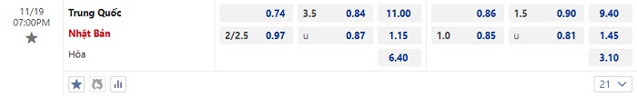 Tip kèo Châu Á full trận Trung Quốc vs Nhật Bản