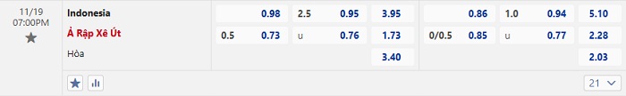 Tip kèo Châu Á hiệp 1 Indonesia vs Ả Rập Xê Út