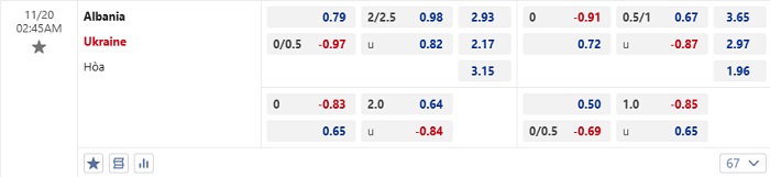 Tip kèo Châu Á full trận Albania vs Ukraine