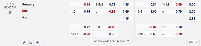 Tip kèo Châu Á full trận Hungary vs Đức