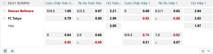 • Dự đoán tỷ số hiệp 1: Shonan Bellmare 1 – 0 FC Tokyo