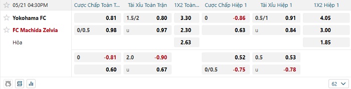 Tip kèo Châu Á hiệp 1 Yokohama FC vs Machida Zelvia