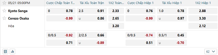 Tip kèo Châu Á hiệp 1 Kyoto Sanga vs Cerezo Osaka
