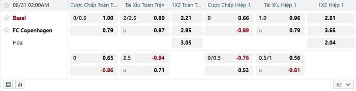 Tip kèo Châu Á full trận Basel vs Copenhagen