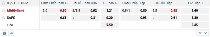Tip kèo Châu Á full trận Midtjylland vs KuPS