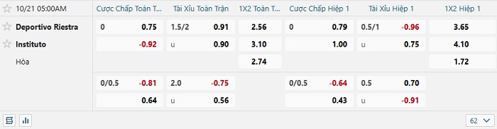 - Dự đoán tỷ số hiệp 1: Riestra 0 – 0 Instituto