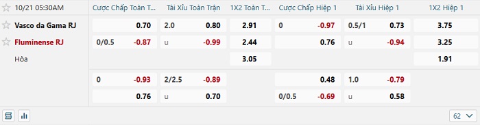 Tip kèo Châu Á full trận Vasco da Gama vs Fluminense