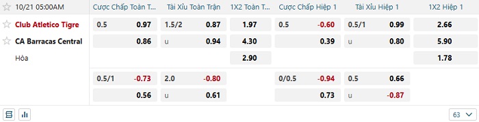Tip kèo Châu Á hiệp 1 Club Tigre vs Barracas Central