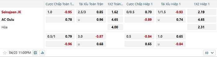 Tip kèo Châu Á hiệp 1 Seinajoen vs Oulu