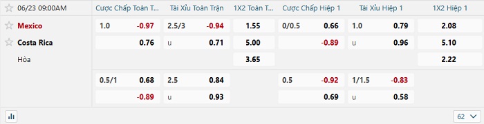 Tip kèo Châu Á hiệp 1 Mexico vs Costa Rica