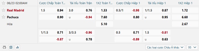 - Tip kèo cá cược Châu Á full trận: Chọn Real Madrid -1 1/2