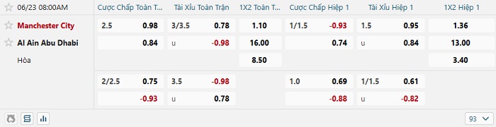 Tip kèo Châu Á full trận Man City vs Al Ain