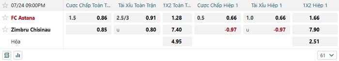 - Dự đoán tỷ số hiệp 1: Astana 1 – 0 Zimbru Chisinau