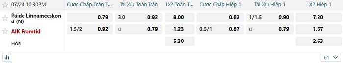 - Dự đoán tỷ số hiệp 1: Paide Linnameeskon 0 – 1 AIK Framtid