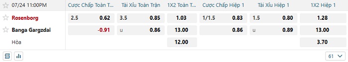 Tip kèo Châu Á hiệp 1 Rosenborg vs Banga Gargzdai