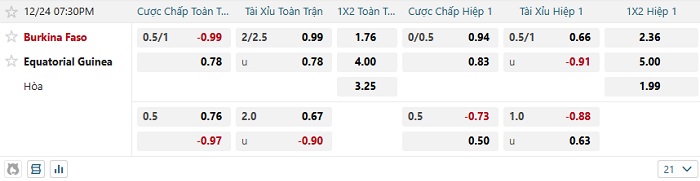 Tip kèo Châu Á hiệp 1 Burkina Faso vs Equatorial Guinea