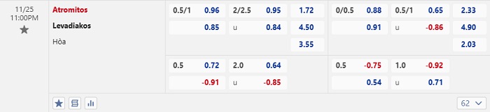 Tip kèo Châu Á hiệp 1 Atromitos vs Levadiakos