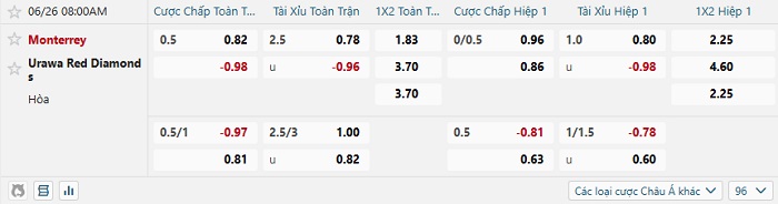 Tip kèo Châu Á hiệp 1 Monterrey vs Urawa Red Diamond
