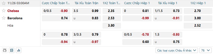 Tip kèo Châu Á full trận Chelsea vs Barcelona