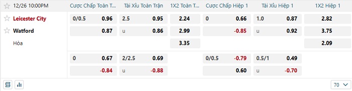 Tip kèo Châu Á hiệp 1 Leicester vs Watford