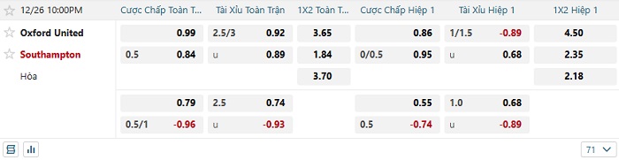 Tip kèo Châu Á full trận Oxford vs Southampton
