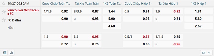 Tip kèo Châu Á hiệp 1 Vancouver Whitecaps vs FC Dallas
