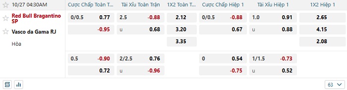 • Dự đoán tỷ số hiệp 1: Bragantino 0 – 0 Vasco da Gama