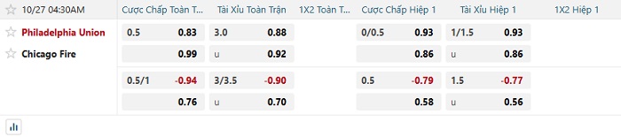 Tip kèo Châu Á hiệp 1 Philadelphia vs Chicago Fire