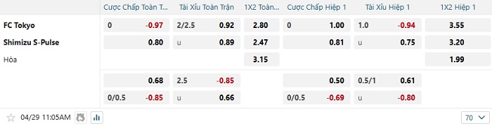 - Dự đoán tỷ số hiệp 1: FC Tokyo 0 – 0 Shimizu S-Pulse