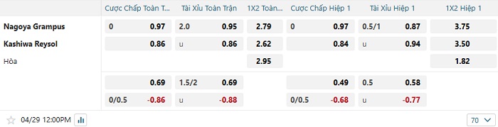 Tip kèo Châu Á hiệp 1 Nagoya Grampus vs Kashiwa Reysol