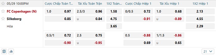 - Dự đoán tỷ số hiệp 1: Copenhagen 1 – 0 Silkeborg