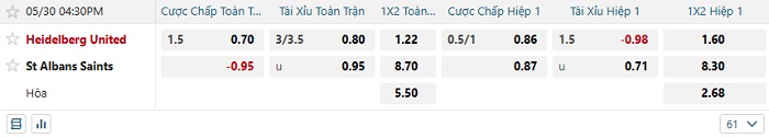 Tip kèo Châu Á full trận Heidelberg vs St Albans
