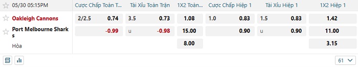 - Tip kèo cá cược Châu Á hiệp 1: Chọn Oakleigh Cannons -1