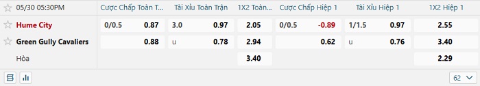Tip kèo Châu Á full trận Hume City vs Green Gully