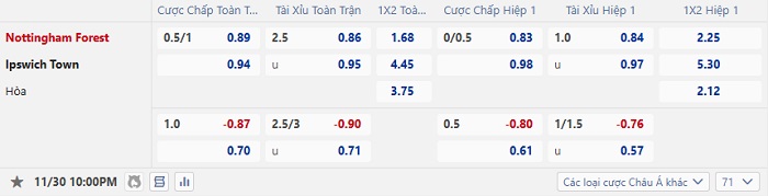 Tip kèo Châu Á full trận Nottingham vs Ipswich