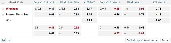 Tip kèo Châu Á hiệp 1 Wrexham vs Preston