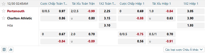 Tip kèo Châu Á hiệp 1 Portsmouth vs Charlton