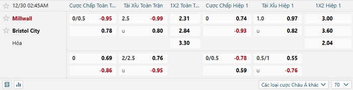 Tip kèo Châu Á hiệp 1 Millwall vs Bristol