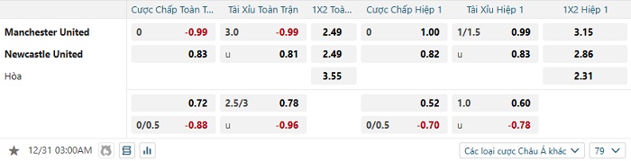 Tip kèo Châu Á full trận Man United vs Newcastle
